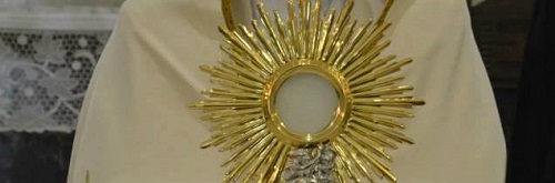 Cari fratelli e sorelle, concludiamo da questo altare la solenne processione del Corpus Domini attraverso le vie e le piazze della nostra città. Ringrazio vivamente tutti voi che avete voluto partecipare a questa manifestazione di fede e devozione popolare. Abbiamo pregato e abbiamo cantato. Gesù, sotto le umili specie dell’ostia consacrata, ha benedetto persone attente e devote, che si sono inchinate al suo passaggio, e persone distratte e indifferenti, che hanno ignorato il suo passaggio. La sua benedizione ha raggiunto anche le persone sole e le persone malate che sono rimaste nelle case. Per tutti indistintamente “Gesù è il volto della misericordia del Padre”. Per tutti indistintamente il suo cuore ama anche se non è riamato; le sue braccia sono aperte anche se sono respinte per protestare contro una sofferenza non accettata o contro una verità non condivisa.