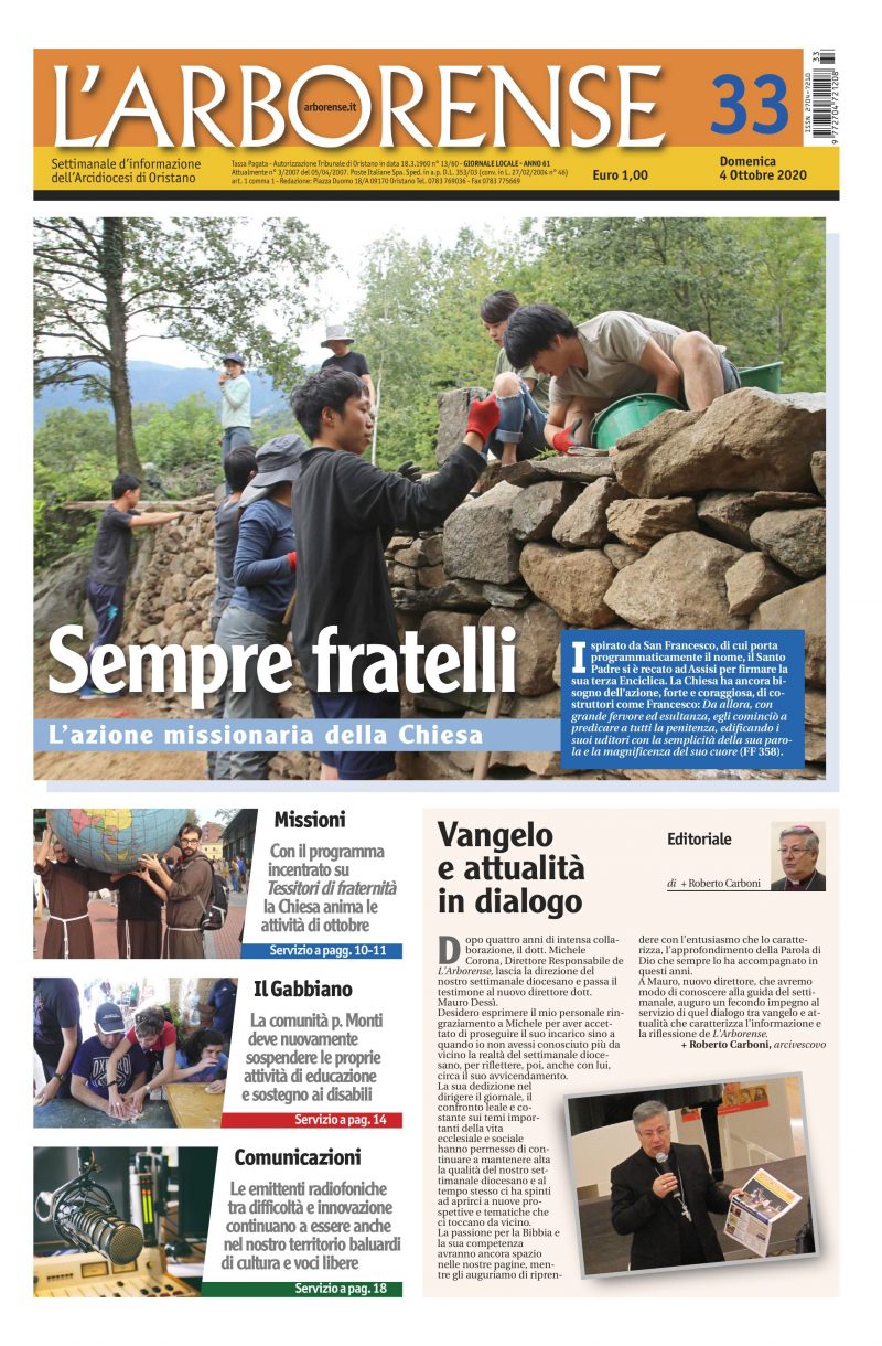 Ma ottobre è anche un mese importante per la Chiesa: il 3 papa Francesco firmerà la sua terza Enciclica “Omnes Fratres” (Fratelli tutti) e lo farà alla vigilia della festa di San Francesco d’Assisi, patrono d’Italia. Il tema della fraternità è anche quello che animerà tutto il mese, tradizionalmente dedicato alla missione: Eccomi manda me! Tessitori di Fraternità è il tema che guiderà poi la giornata missionaria del 18 ottobre. All’interno ampi servizi su questi eventi.