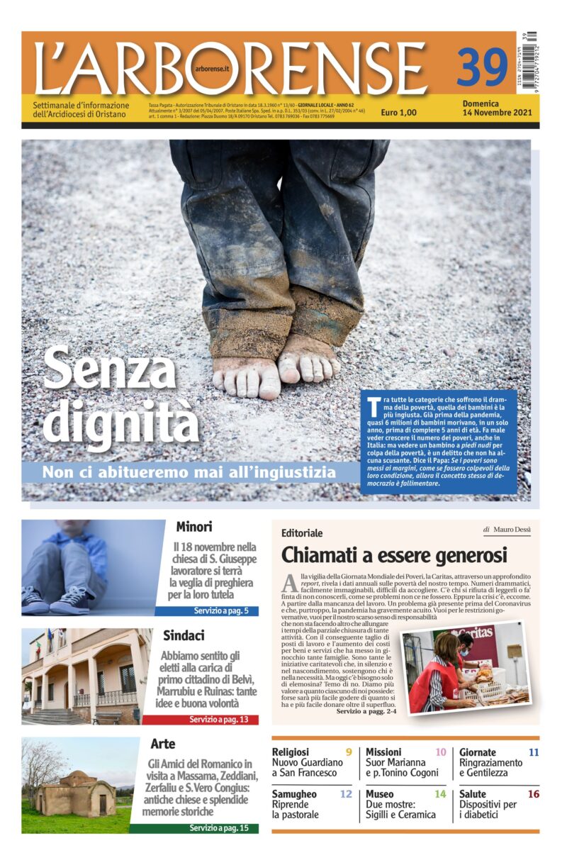 E’ la V Giornata Mondiale dei Poveri il tema con cui apre il nuovo numero de L’Arborense, il 39 del 2021, nelle case degli abbonati da giovedì 11 novembre.