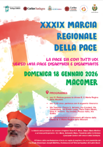 Si terrà a Macomer, domenica 18 gennaio, la XXXIX MARCIA DELLA PACE organizzata dalla Delegazione regionale Caritas Sardegna, in collaborazione con il CSV Sardegna Solidale. Alla macchina organizzativa quest’anno si aggiungono la Diocesi di Alghero-Bosa e il Comune di Macomer. La XXXIX Marcia della Pace avrà come tema La pace sia con tutti voi. Verso una pace disarmata e disarmante, richiamato nel Messaggio di Papa Leone XIV per la LIX Giornata Mondiale della Pace.