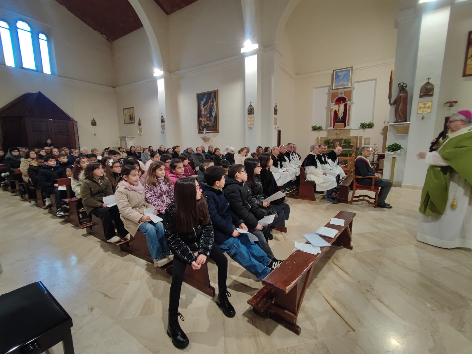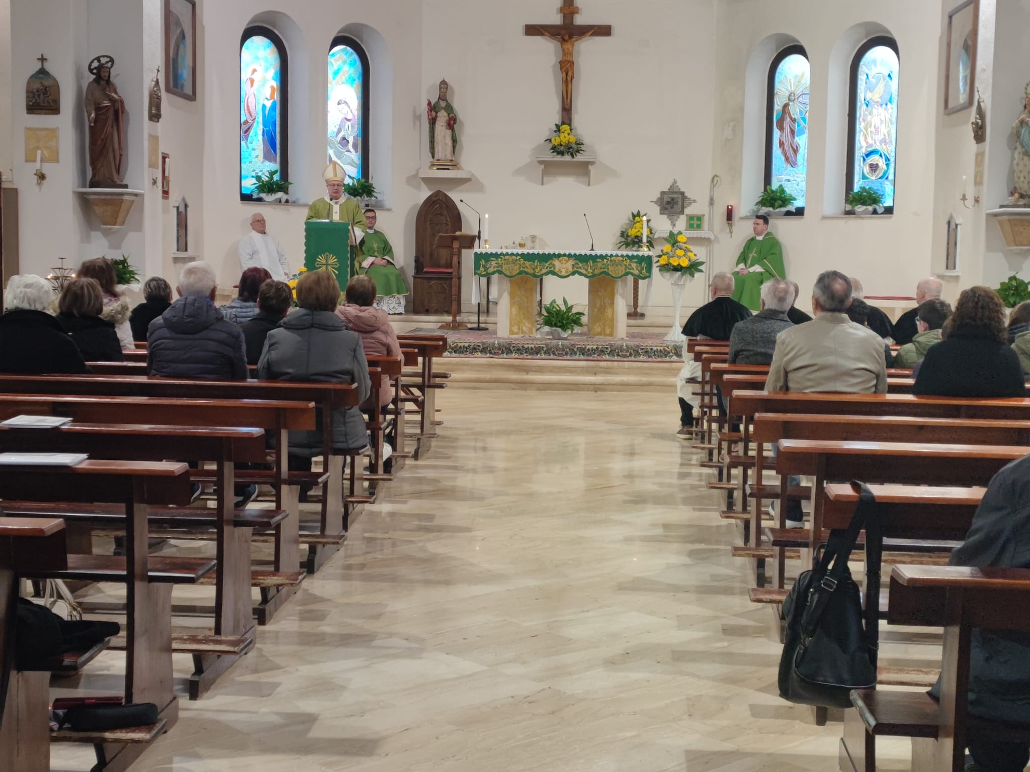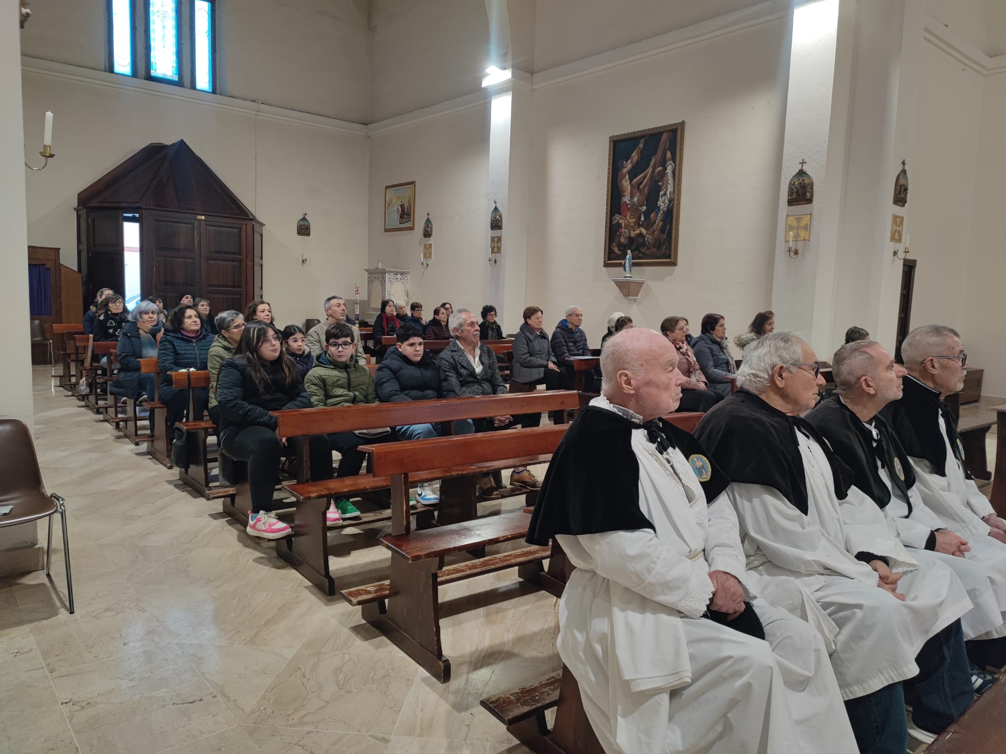 Il lunedì mattina, 26 gennaio, invece, è stato dedicato all’ascolto personale. In udienza privata, padre Roberto ha incontrato quanti hanno desiderato condividere con lui le luci e le fatiche della vita comunitaria, le domande aperte, le ferite e le speranze che attraversano il cammino di una piccola comunità. In serata, la Celebrazione eucaristica nella piccola chiesa di San Pietro ha riportato l’attenzione su uno dei luoghi più cari alla memoria collettiva del paese: un luogo semplice e raccolto, che in passato ha accolto il cimitero del paese e che ancora oggi custodisce il cuore della sua storia e della sua fede.