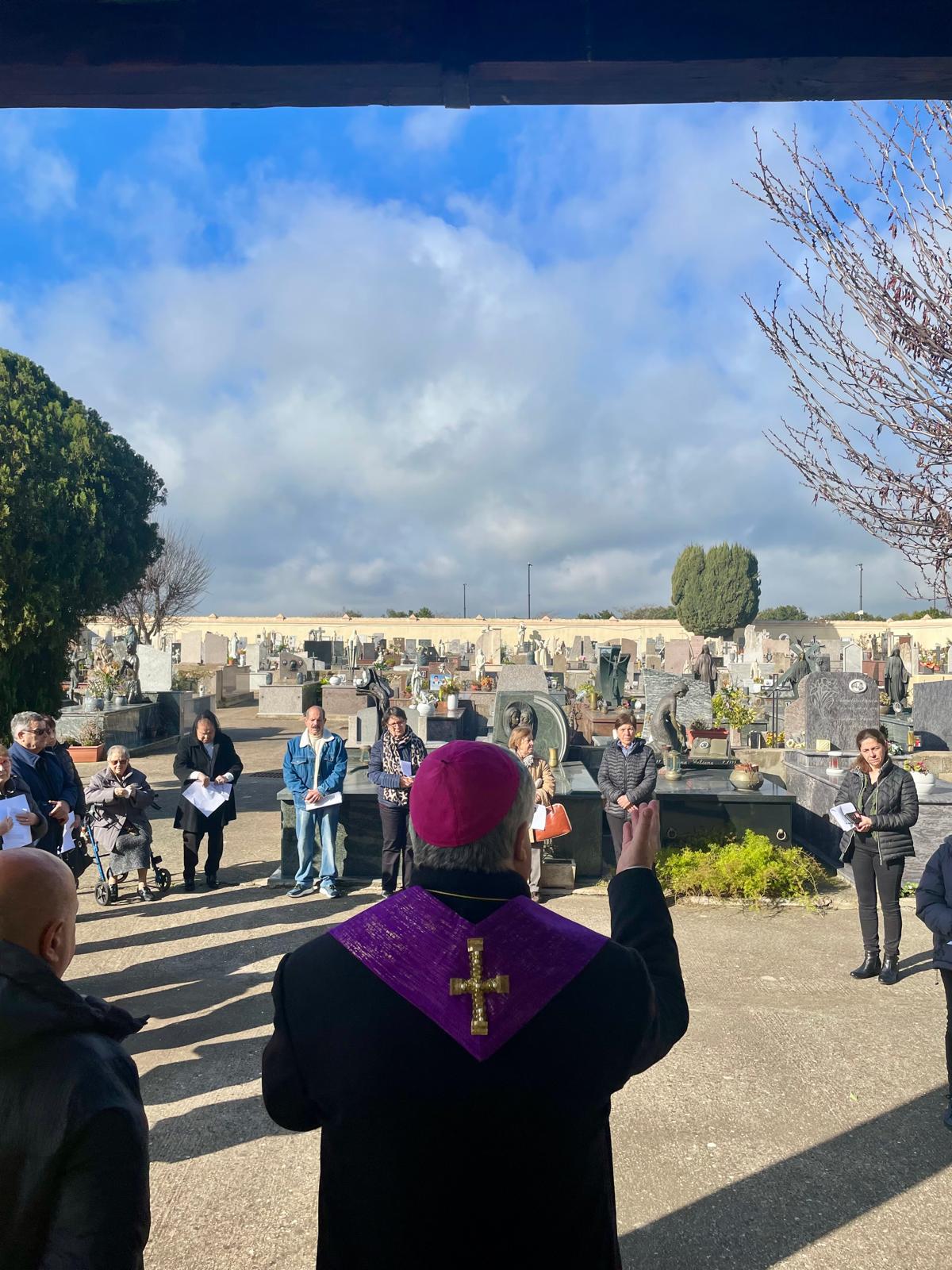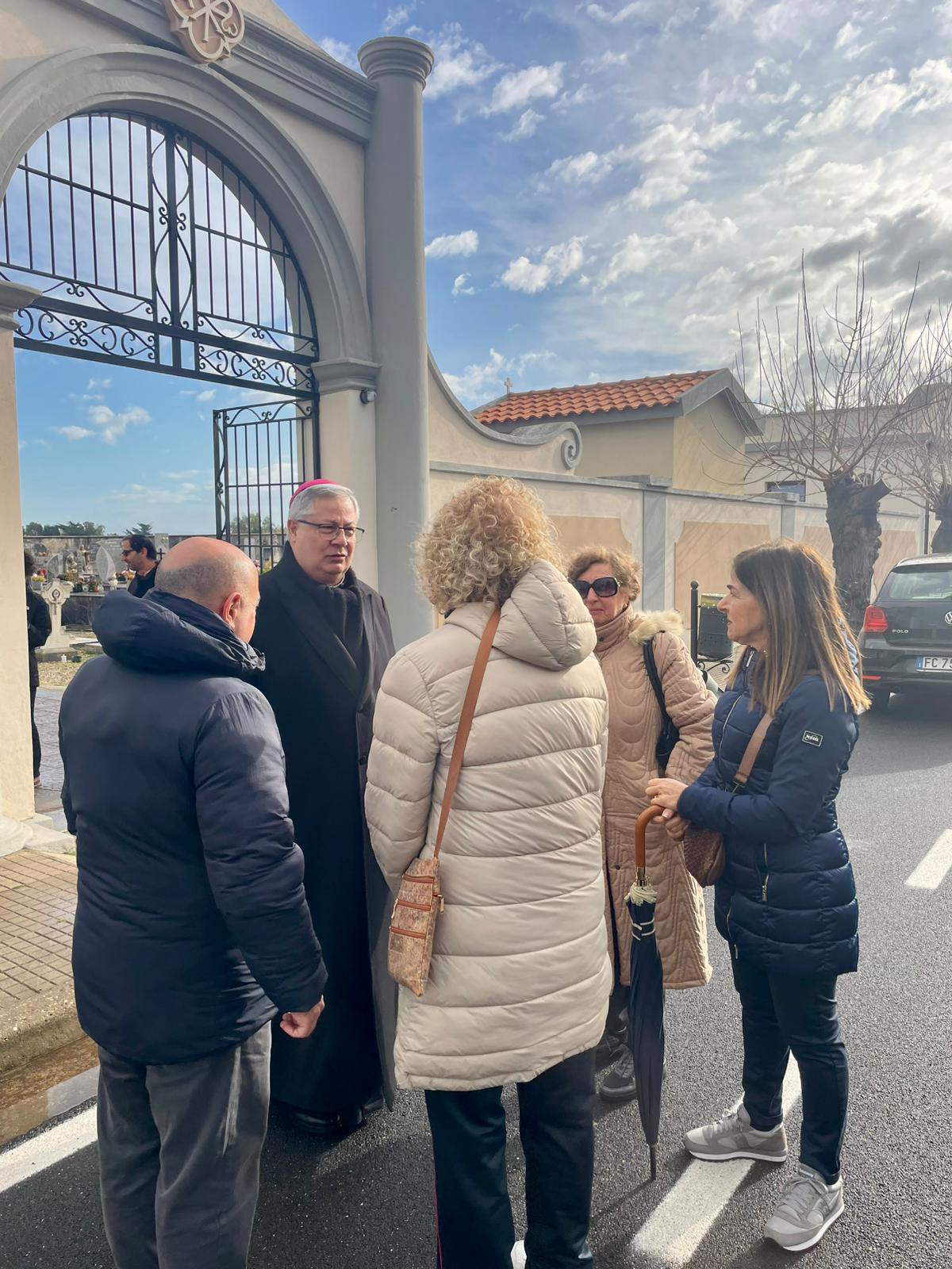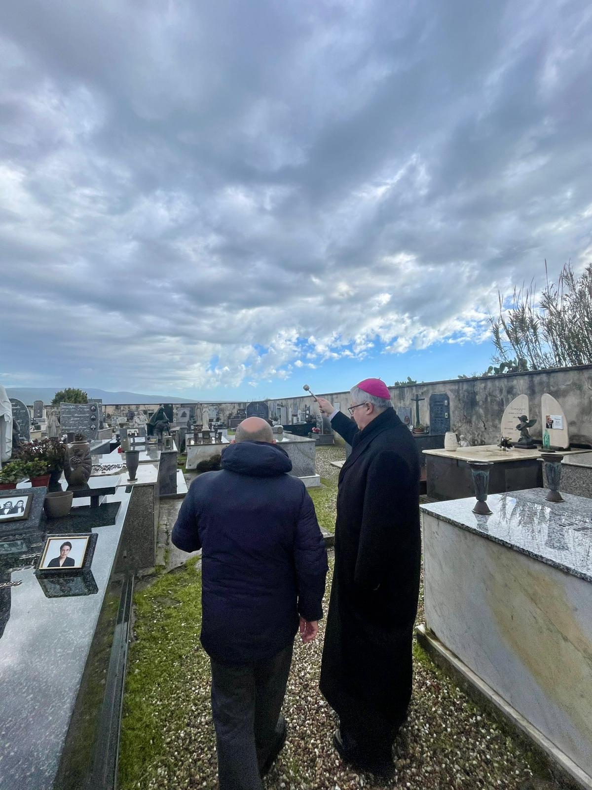 Mercoledì 11, nel cimitero comunale, è stato vissuto un momento di preghiera in suffragio di tutti i defunti, seguito dalla benedizione delle tombe; successivamente, l’Arcivescovo ha fatto visita ad alcuni malati e anziani della comunità, pregando con loro e con i loro familiari.