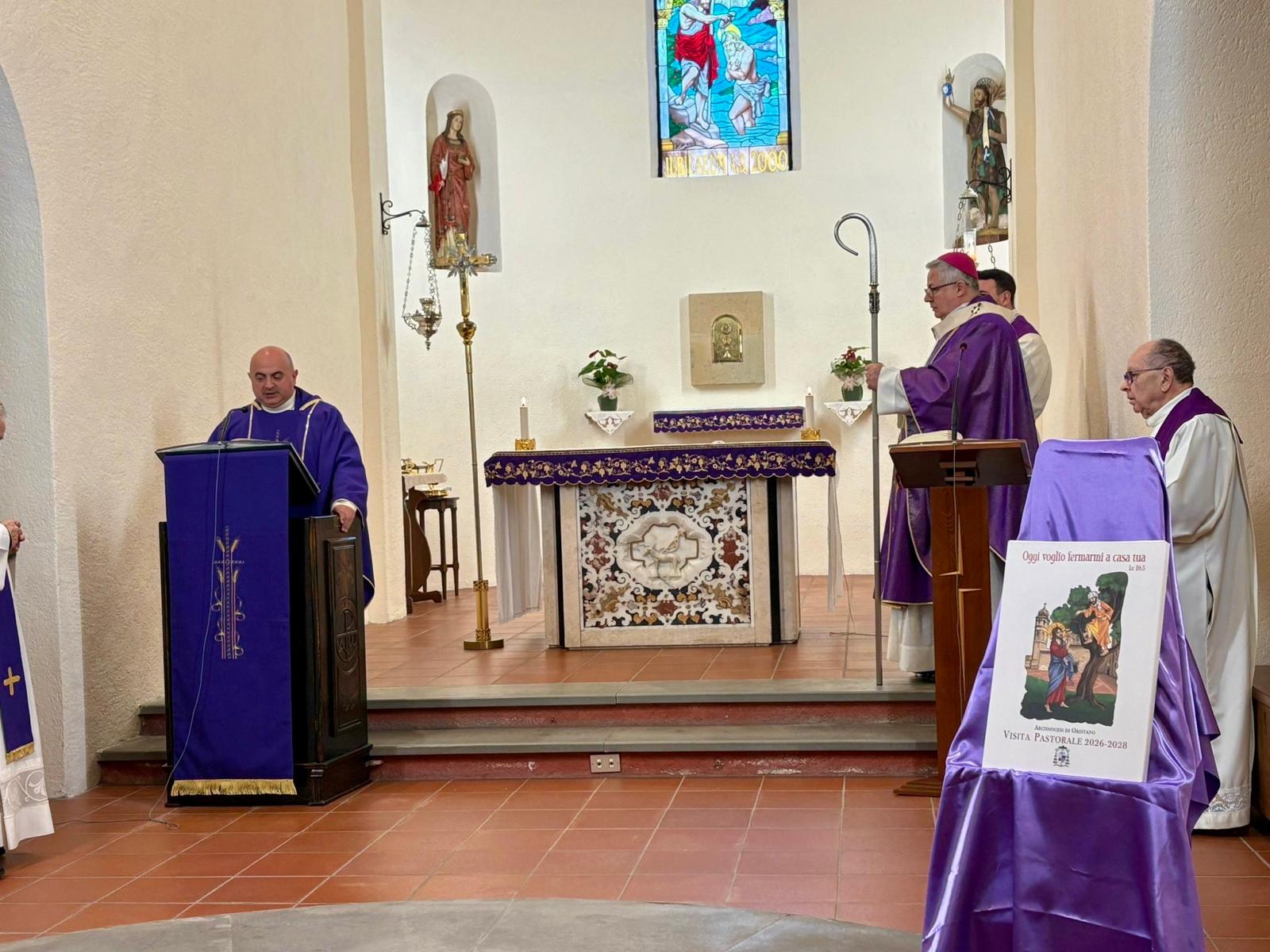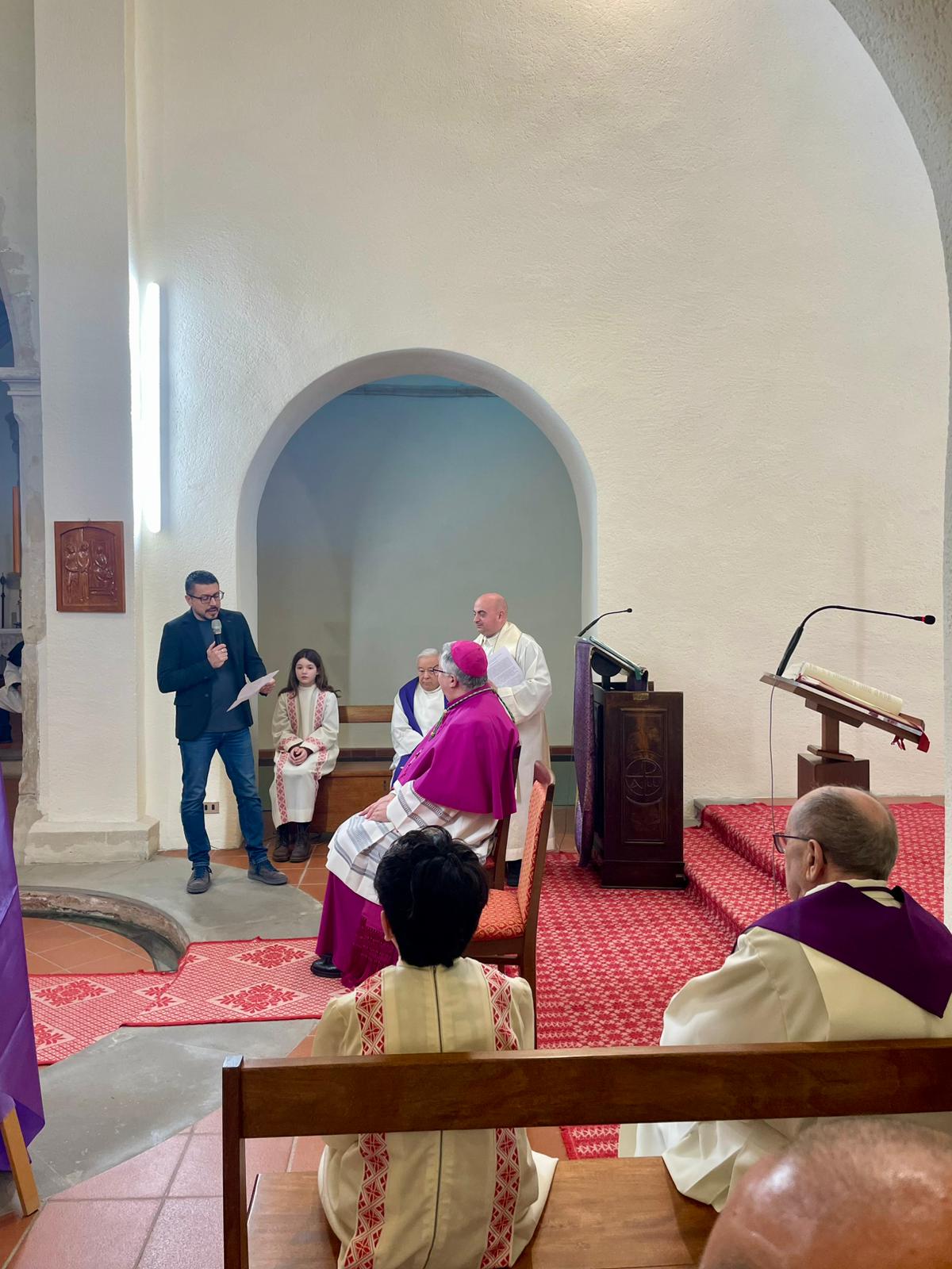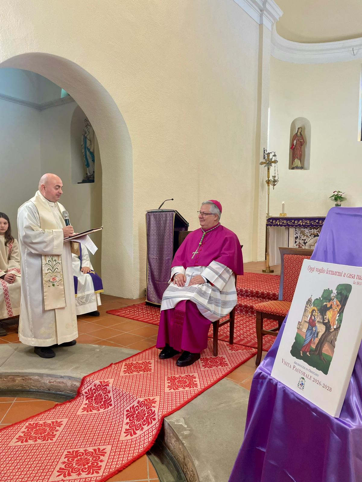 Domenica 8, accolto nel giardino della casa canonica dal sindaco Lorenzo Pinna e dai Carabinieri della stazione locale, l’Arcivescovo Roberto ha aperto la Visita: ad attenderlo, nel vicino sagrato, il parroco don Enrico Perlato insieme a don Ignazio Cau e mons. Franco Porchedda, le confraternite e i ministranti, con i quali l’Arcivescovo ha fatto il suo ingresso in chiesa. Dopo l’aspersione dei numerosi fedeli riuniti e prima dell’inizio della Santa Messa, il parroco, il sindaco e un rappresentante della comunità hanno rivolto i loro saluti a mons. Roberto Carboni.
