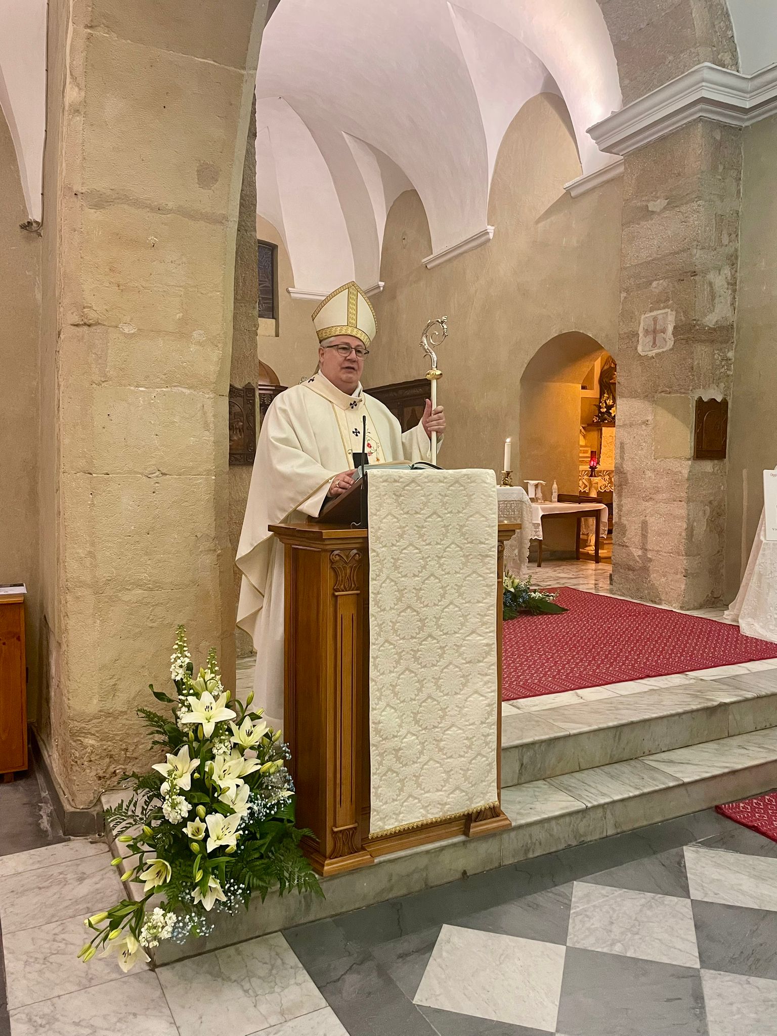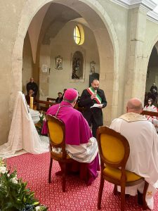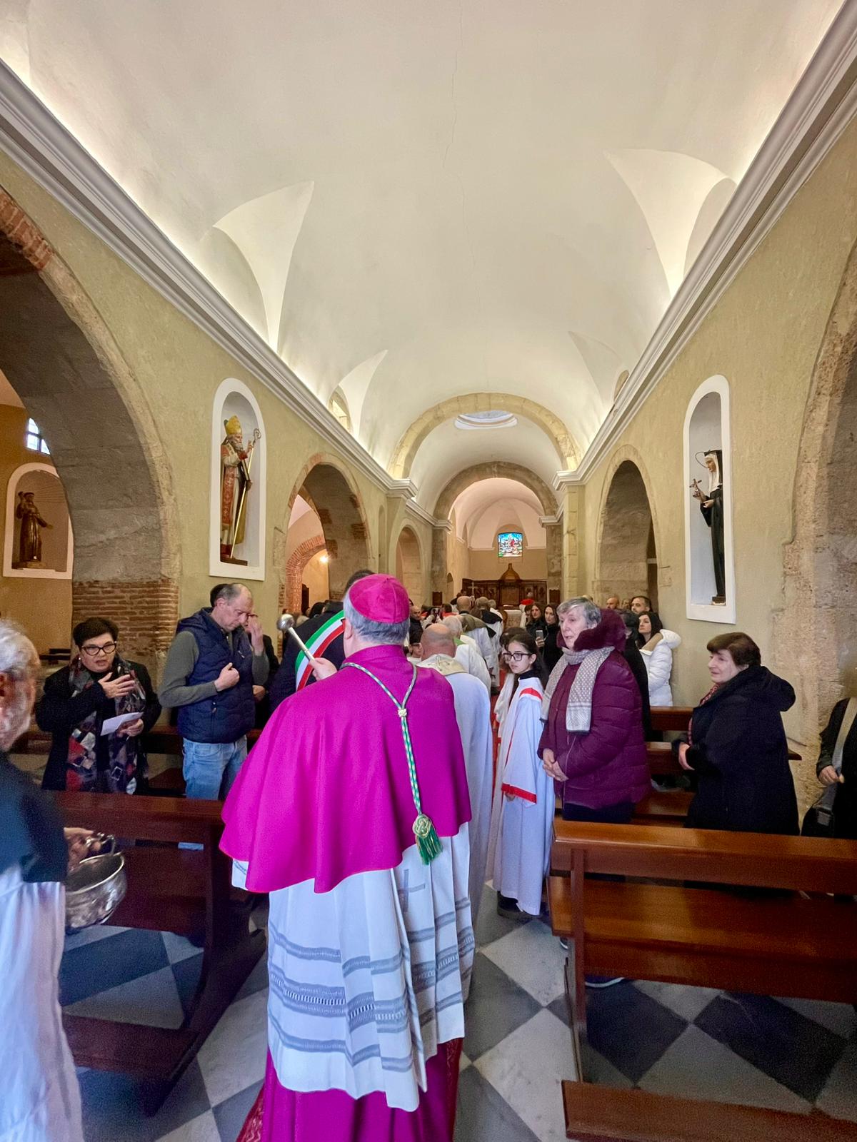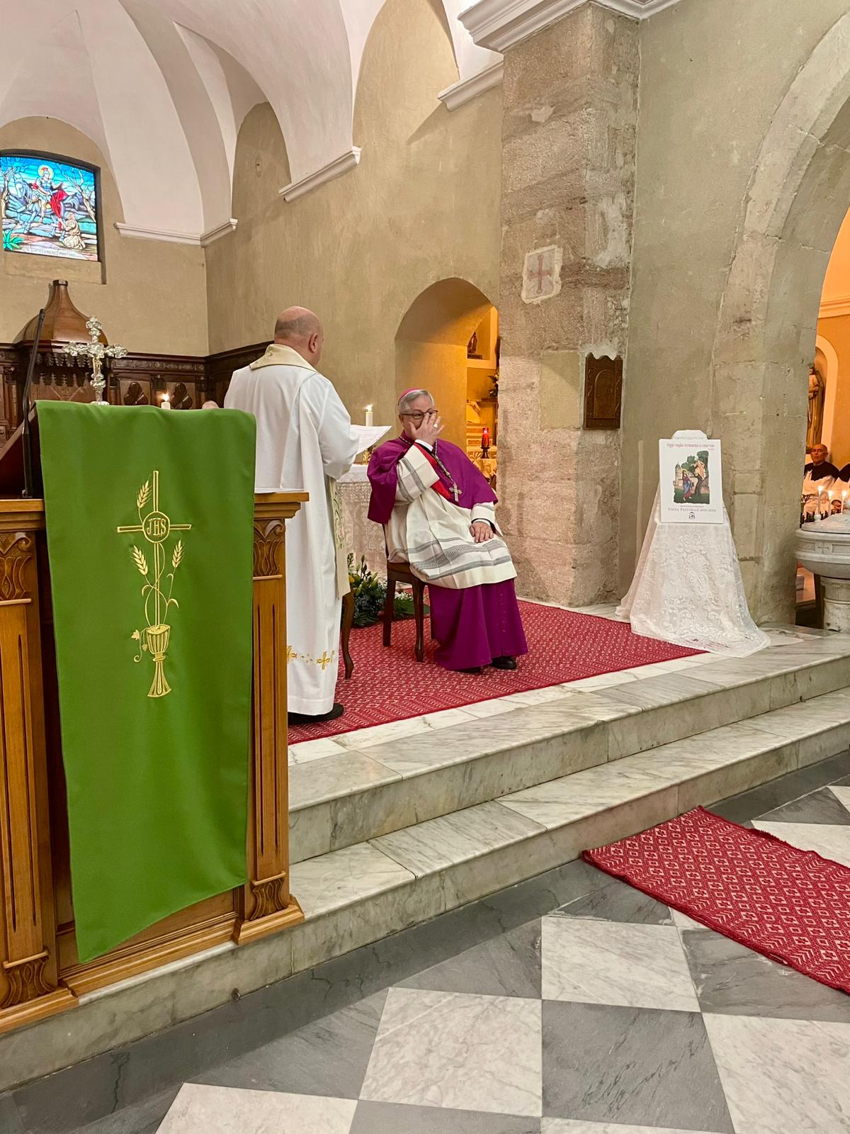 Domenica 8, accolto nel giardino della casa canonica dal sindaco Lorenzo Pinna e dai Carabinieri della stazione locale, l’Arcivescovo Roberto ha aperto la Visita: ad attenderlo, nel vicino sagrato, il parroco don Enrico Perlato insieme a don Ignazio Cau e mons. Franco Porchedda, le confraternite e i ministranti, con i quali l’Arcivescovo ha fatto il suo ingresso in chiesa. Dopo l’aspersione dei numerosi fedeli riuniti e prima dell’inizio della Santa Messa, il parroco, il sindaco e un rappresentante della comunità hanno rivolto i loro saluti a mons. Roberto Carboni.