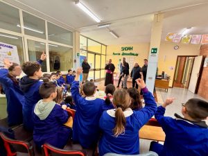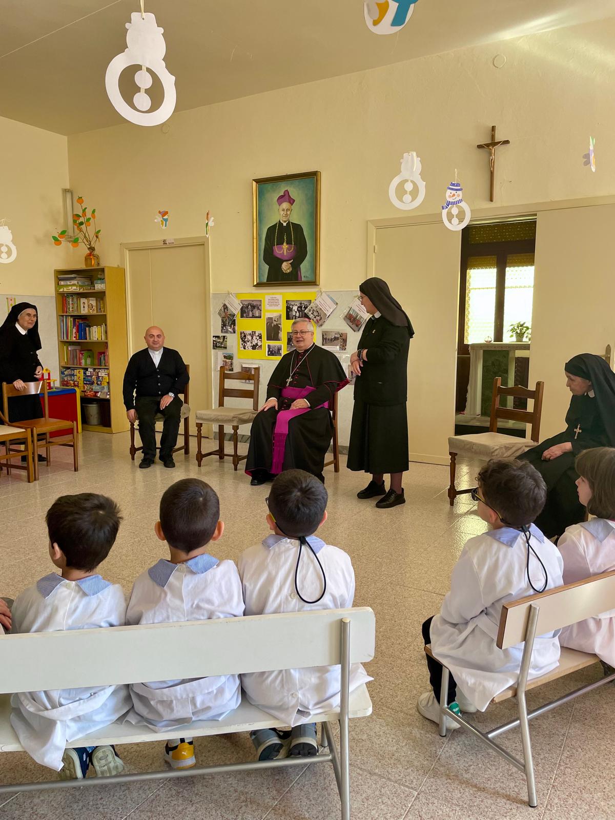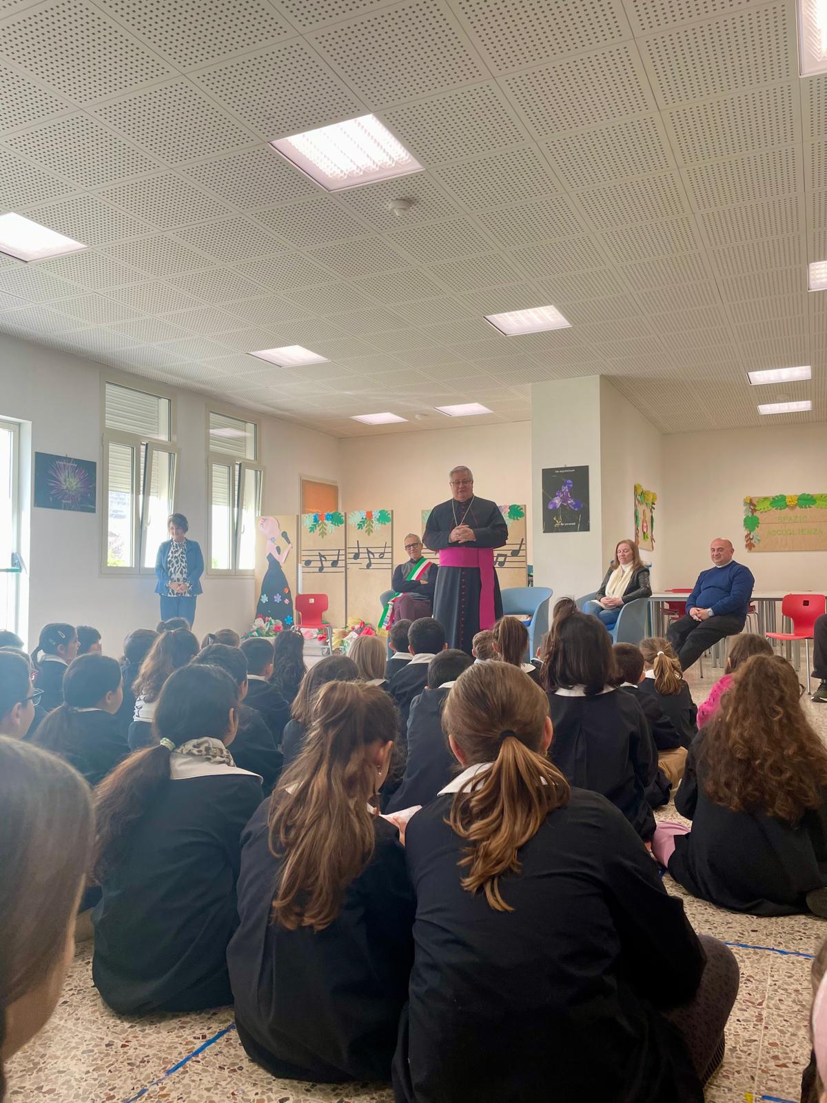 Lunedì, accompagnato dal Dirigente scolastico dell’Istituto Comprensivo di Cabras (di cui Riola fa parte), l’Arcivescovo ha visitato la scuola dell’infanzia, nella sua nuova sede inaugurata di recente; successivamente ha raggiunto l’istituto che ospita la scuola primaria e secondaria di primo grado, dove è stato accolto dal vicepreside, dai collaboratori scolastici e dai bambini e ragazzi accompagnati dai loro docenti: un po’ emozionati gli alunni hanno posto alcune domande all’Arcivescovo, soprattutto curiosità sulla sua vita privata e sulla sua vocazione, ma anche sulla pace e sulla Chiesa.