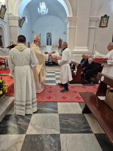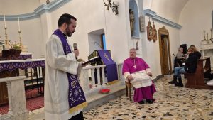 Il 6 e il 7 marzo, l’Arcivescovo ha incontrato la comunità di Pardu Nou: la mattina, un momento di adorazione eucaristica e di colloquio con i fedeli; nel pomeriggio, la Via Crucis meditata con i bambini che si stanno preparando alla Prima Comunione. Il giorno seguente, la mattina, l’Arcivescovo ha visitato alcuni parrocchiani anziani e malati; la sera ha celebrato la Santa Messa, con l’unzione dei malati, a conclusione della visita.