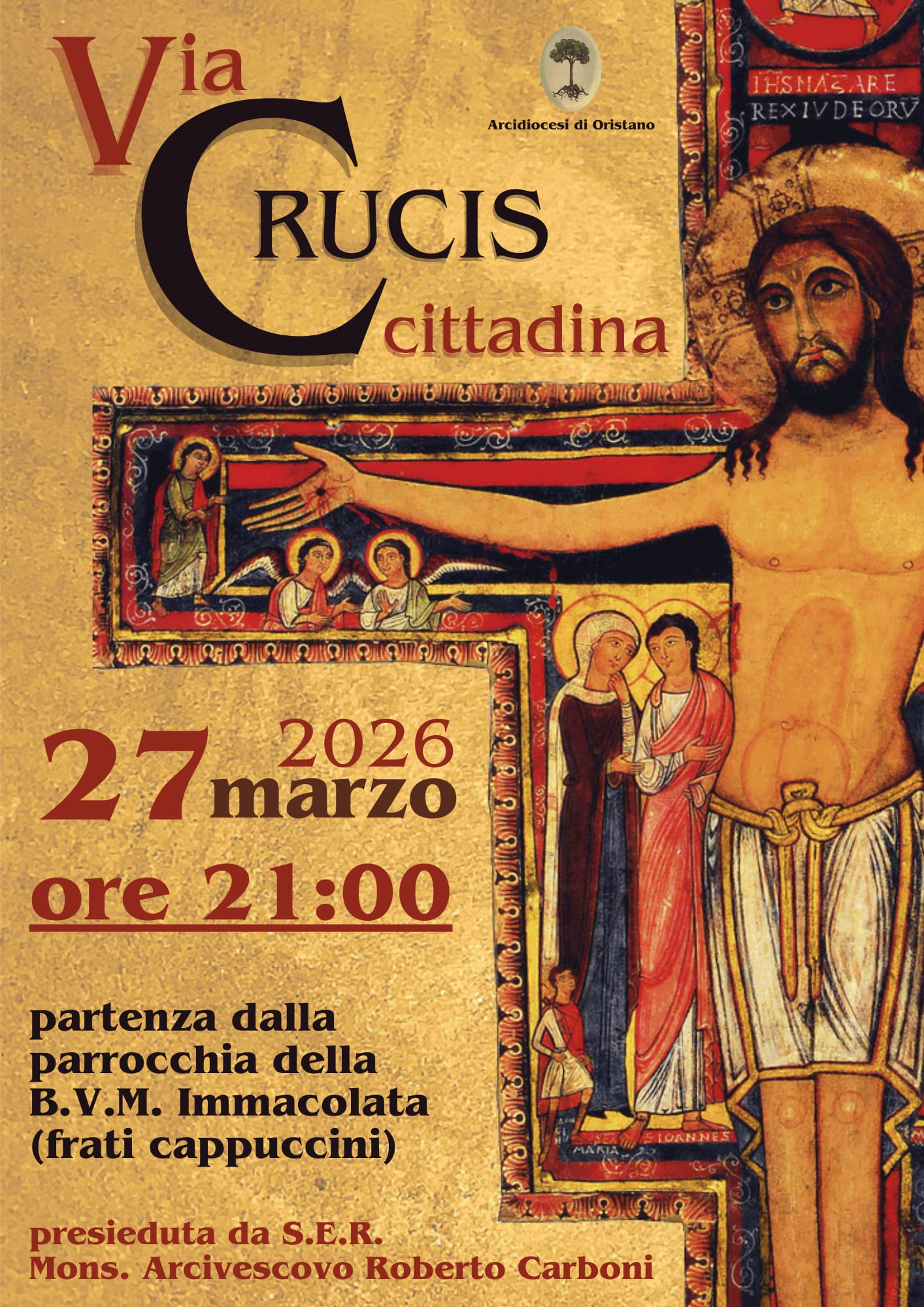 Venerdì 27 marzo 2026, organizzata dal Vicariato urbano, alle ore 21, con partenza dalla parrocchia dell’Immacolata (dei frati cappuccini) ci sarà la Via Crucis cittadina presieduta dall’Arcivescovo Roberto.