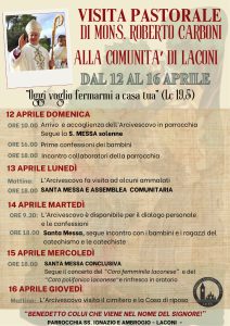 Dopo la pausa per la Settimana Santa e le festività pasquali, riprende la Visita Pastorale dell’Arcivescovo Roberto.