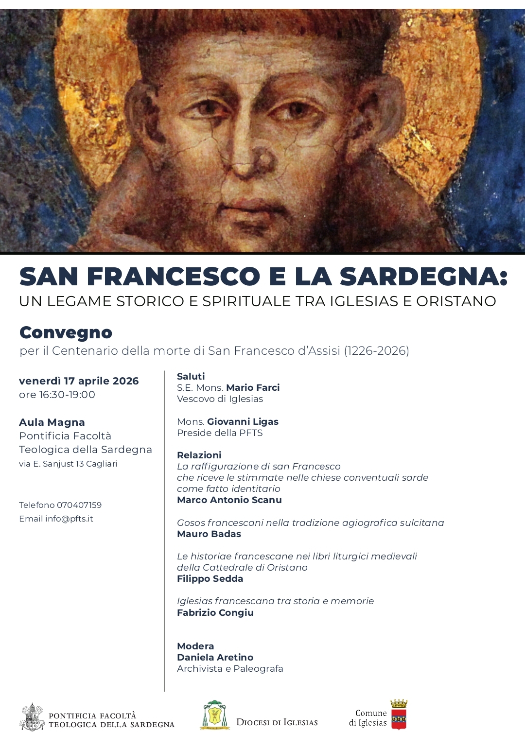 In occasione degli 800 anni dalla morte di San Francesco d’Assisi, la Facoltà Teologica della Sardegna, in collaborazione con la Diocesi e il Comune di Iglesias, organizza un convegno dal titolo «San Francesco e la Sardegna: un legame storico e spirituale tra Iglesias e Oristano».
