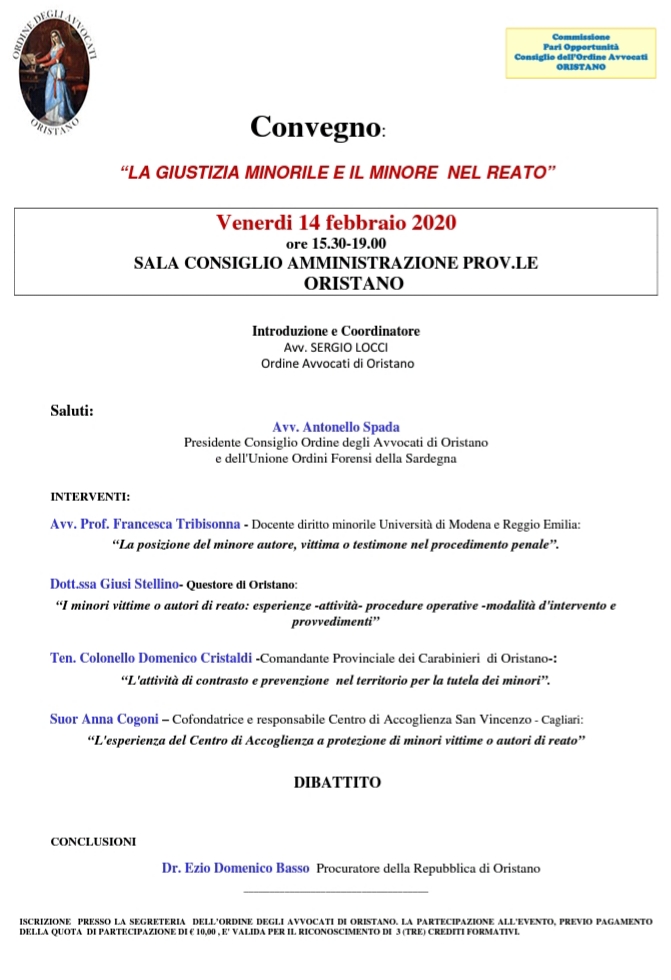 L’Ordine degli Avvocati propone per il 14 febbraio 2020 un secondo appuntamento di incontro e riflessione sul tema “la tutela dei minori”. Nella locandina il programma del convegno.