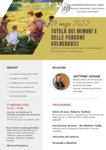 Martedì 17 maggio 2022, a Donigala Fenughedu, nel Centro di Spiritualità Madonna del Rimedio, si terrà un convegno sulla Tutela dei minori e delle persone vulnerabili.